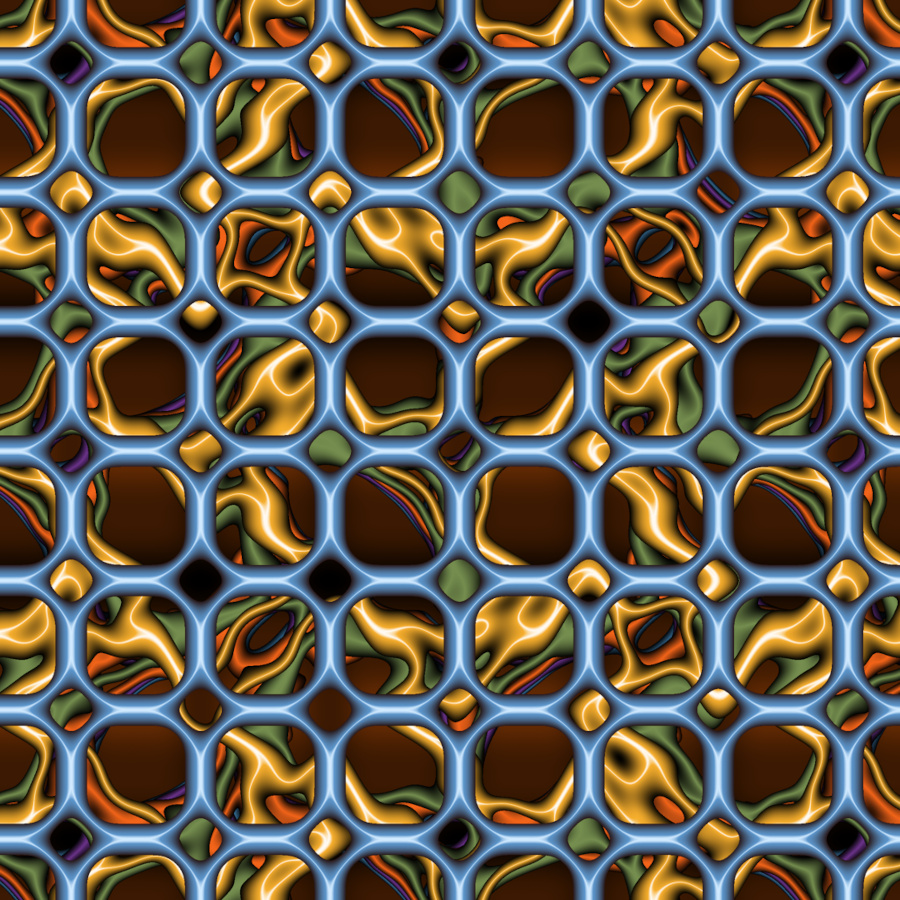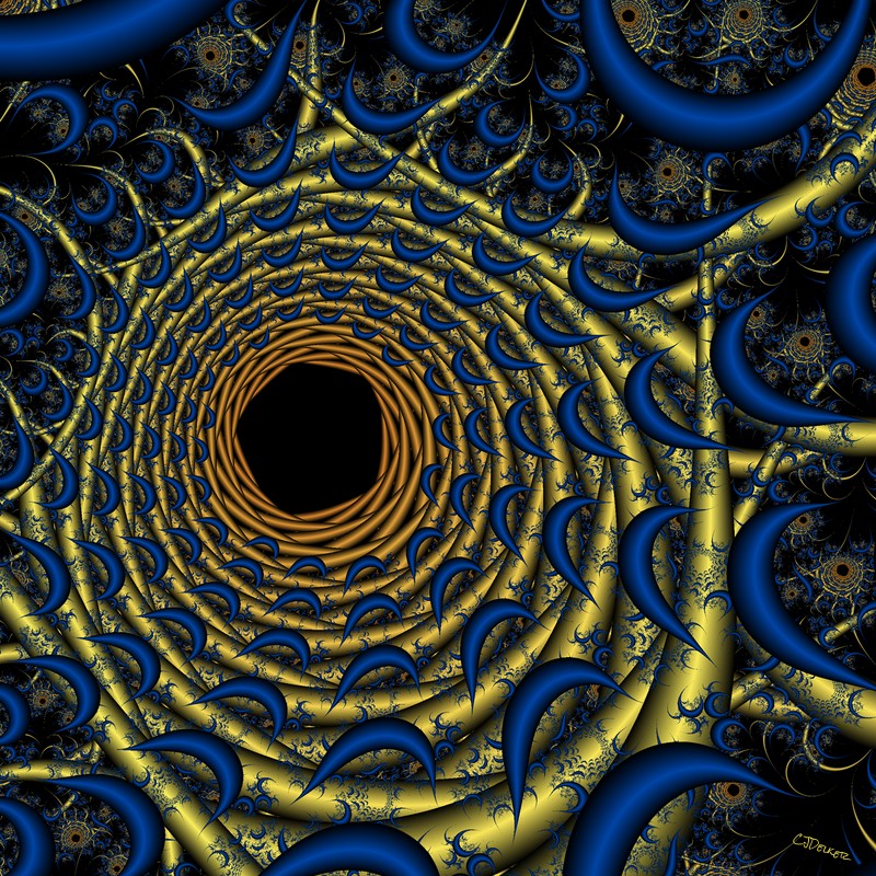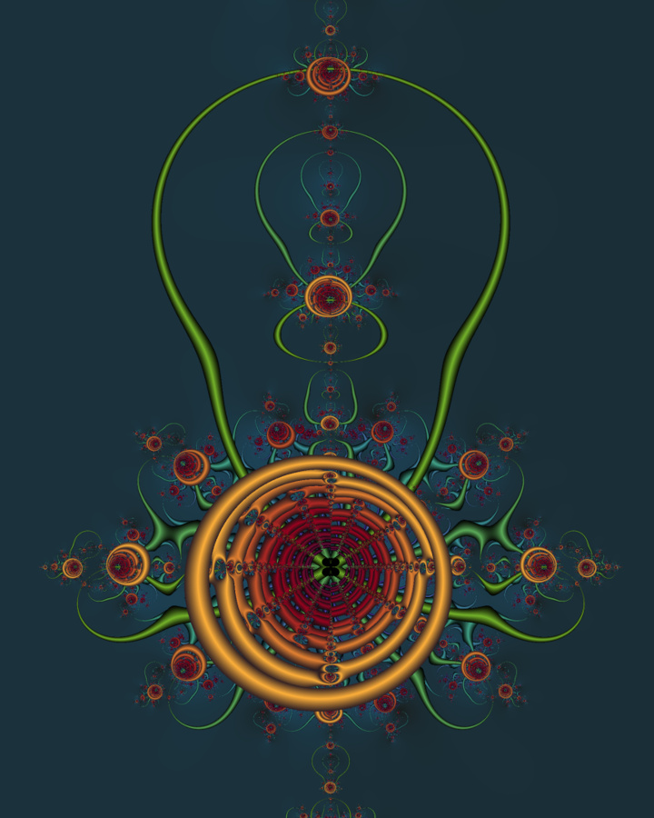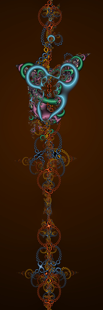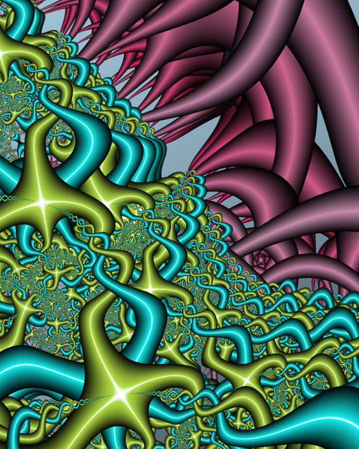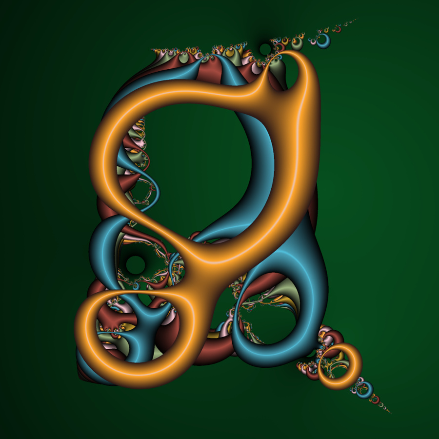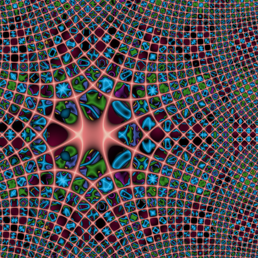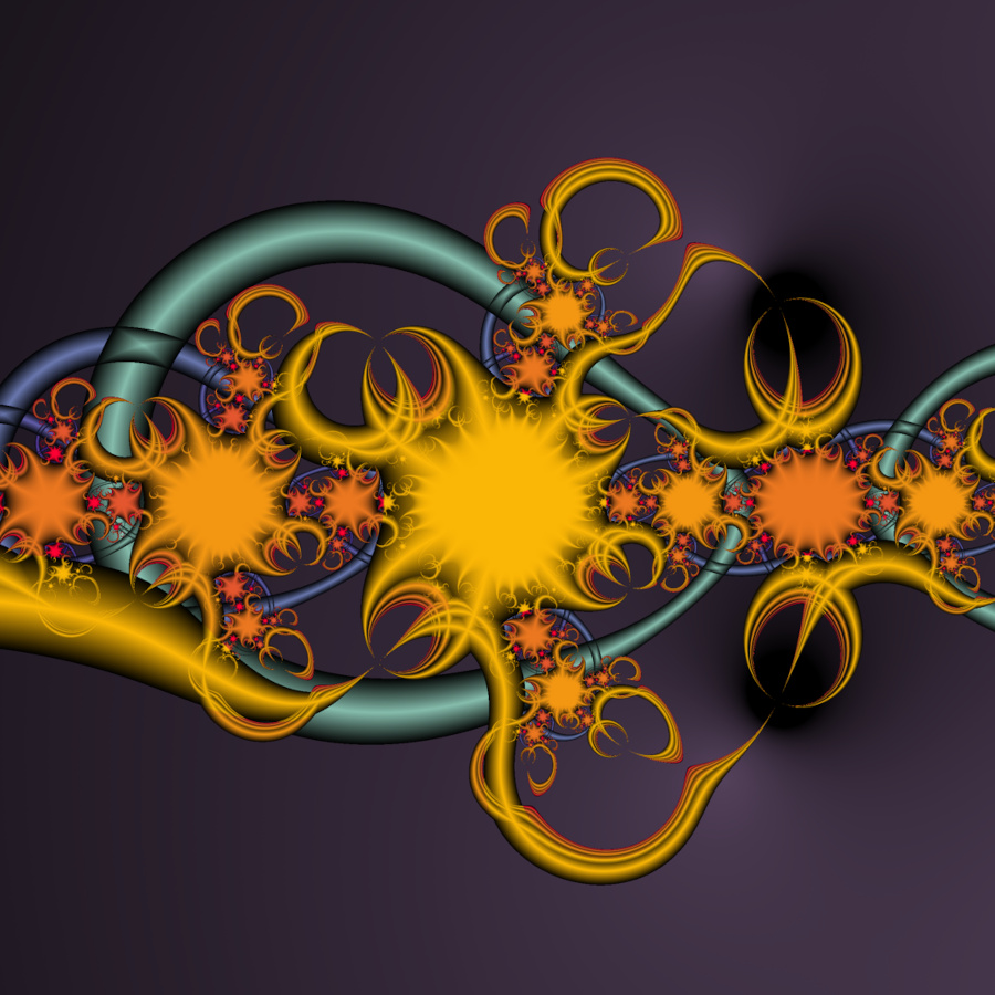 These fractals are colored using orbit traps rather than the typical escape time coloring used by many fractal images. Read more.