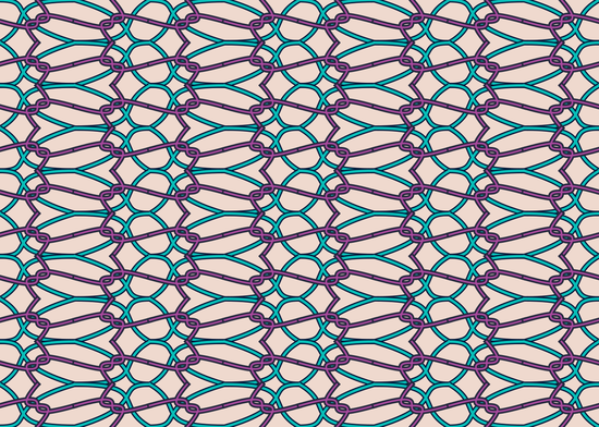 This pattern uses Wallpaper Group pmg (22*), with tiles containing arbitrary bezier curves.