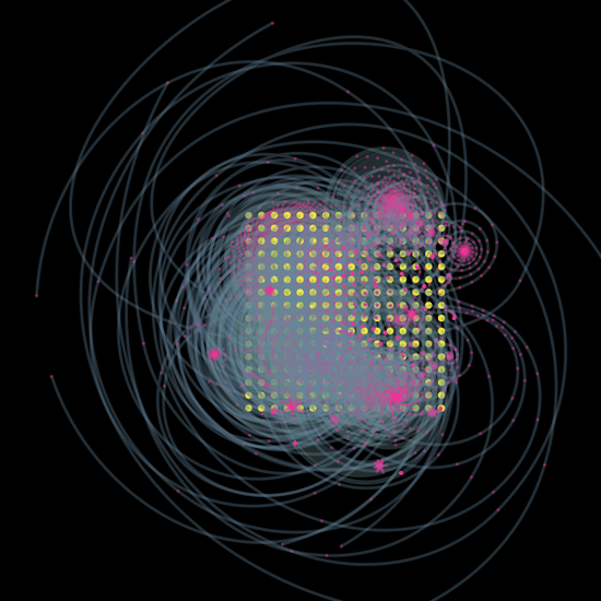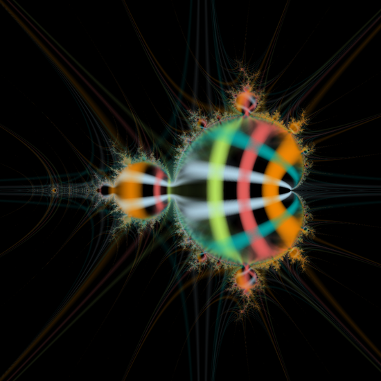 Applying a transparency channel to a otherwise typical orbit trap fractal leads to some interesting effects. Might need to explore this one more later.